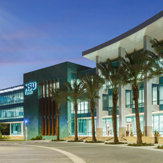 Nova Southeastern University's Davie/Fort Lauderdale campus is at the heart of South Florida’s academic and research hub and is home to our 12 colleges, centers, and schools. At the center of it all is the five-story Alvin Sherman Library, Research, and Information Technology Center, the largest library in the state of Florida, and the Don Taft University Center, our state-of-the-art, multipurpose sports and recreation complex. Steps away are the NSU University School, residence halls, cafeterias, computer labs, the bookstore, athletic facilities, and parking facilities.
