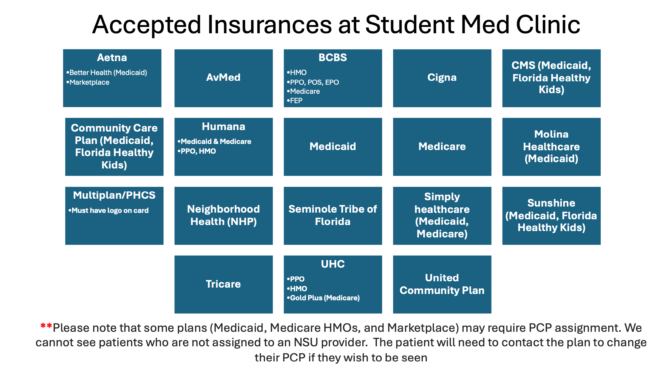 - Insurance Accepted at NSU Health Student Medical Clinic