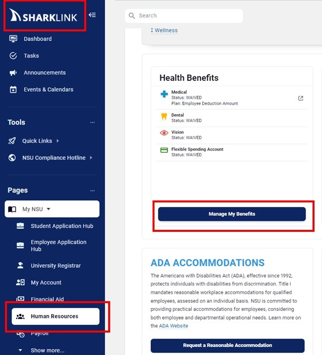 You can now access your benefits through NSU’s Single Sign-On SharkLink (View screenshot). Once logged in, you can manage everything in the ICUBA Benefit Portal, including: